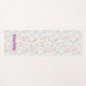 Confetti colorido - pontos redondos multicores com fundo branco e roxo e letras roxas