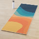 Ilustração de padrão geométrico com ondas retrorreflectoras de listras amarelas, laranja, azuis, azuis-marinho e turquesas