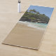 Tapete De Yoga Elegante Ondas Costeiras Areia Palmas Modelo