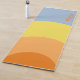 Um tapete yoga estilo retrô personalizado dos anos 70 em tons de azul, cor de laranja ensolarada e amarelo. O estilo da fonte, o tamanho da fonte e a cor podem ser alterados clicando em "Editar usando a ferramenta design".