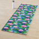 Yoga Mat em um padrão de flores cor-de-rosa florescente e lágrimas verdes e luxuosas flutuando em uma superfície de água azul, texturizada, em tons de joia de rosa e verde esmeralda