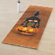 Tapete De Yoga Gato Halloween Caricatura Assustada na Pumpkin