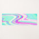 Este design holográfico de espiral líquido marmoreado iridescente apresenta uma mistura mesmerante de néon vibrante e cores pastéis. A imagem é trivial e distorcida, com efeito de difração de luz cativante, reminiscente do estilo vaporwave psicodélico dos anos 80-90.