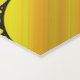 Três estilos de fractais desenhados à mão, incluindo triângulos Sierpinski, juntas aplonianas, e um design quadrado com temas semelhantes, compõem as camadas desta mandala geométrica, sobrepostas num gradiente amarelo e laranja brilhantes.