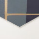 Linhas de ouro e formas geométricas em azul-indigo, cinza-azul e bege constituem essa ilustração impressionante e contemporânea.
