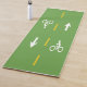 Um tapete de ioga projetado para entusiastas de ciclismo! Impresso de um lado, este tapete retrata uma faixa de dois sentidos normalmente vista em áreas urbanizadas e perto de campi universitários. Cores e marcas foram modeladas quase exatamente para serem dimensionadas com base nas especificações USDOT para a coisa real.
