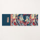 This Japanese inspired yoga mat design includes koi fish in waves of red, navy, and light blue, colored with "election poster" colors. The koi are caught up in a slightly psychedelic wave pattern that repeats at the top and bottom of the printed area. The waves are inspired by the famous Great Wave off Kanagawa artwork by Hokusai with swirling water and seafoam. Your monogram initials are printed at the bottom in a colorblock of navy with cream letters trimmed with red.