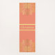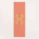 Um belo ioga ou tapete de exercícios com uma design de mandala desenhada à mão num tom dourado sobre um fundo cor-de-rosa de salmão. Adicione seu nome ao centro.