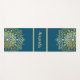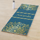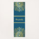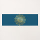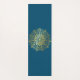 Um belo ioga ou tapete de exercícios com uma design de mandala desenhada à mão num tom dourado sobre um fundo azul escuro de cor. Adicione seu nome ao centro.