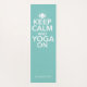 Usufrua das suas poses favoritas de ioga neste fabuloso tapete com texto branco "Keep Calm and Yoga On" com flor de lótus em um fundo verde-menta sólido. Adicione seu nome para um toque pessoal. Perfeito para a sua rotina de exercício.