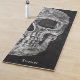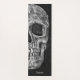Têxtil macabro preto e branco, textura impressão metade crânio, ioga. Louco, assustador, mau, sinistro. Personalizada, legal, moderna, única, moderna, assustadora design do estilo Halloween. Imagem copyright Marg Seregelyi Fotografia.