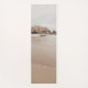A calming yoga mat featuring a soft coastal shoreline in warm natural tones.