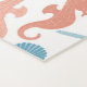 Coral de tangerina e azul-cerulano são as cores neste bonito tapete de ioga náutico. Imagens de cavalos-marinhos, conchas e estrelas-do-mar constituem o padrão repetitivo. No centro há um banner de ornamentado com linha azul correspondente com seu monograma e nome na tangerina e azul. Tudo é colocado sobre um fundo branco. Bonita!