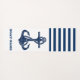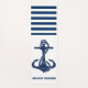 Esta imagem apresenta um nome de barco e ancora em um fundo listrado azul e branco marinho.