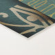 Num pano de fundo verde estão os hieróglifos sombreados de cobre e hortelã ombre com uma banda verde no meio com um olho egípcio repetido de cobre, que cria as misteriosas vibrações quíticas.