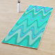 Este tapete de ioga apresenta um padrão zigue moderno em belos tons de turquesa. Como ondas de oceano. Arte digital, legal e exótica.