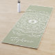 Embarque as vibrações costeiras com este tapete ioga personalizado apresentando uma palmeira e uma design de mandala em tons verdes de sábio. Perfeito para os entusiastas do ioga que amam a praia, este tapete inclui um monograma personalizável e detalhes elegantes, fazer uma adição única à sua rotina malhação. Excelente para exercícios de praia, sessões de yoga em casa, ou como um presente pensativo para amantes do oceano e fãs de malhações.