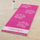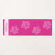 Um design único para amantes de cães que praticam ioga. Quatro estampas de pata cheias de um padrão cardíaco atravessam este tapete rosa-quente giro adicionando um toque encantador à sua rotina diária. Entre na sua jornada de yoga com estilo pessoal e alegria. Personalizado com um monograma cursivo suave. Cores: rosa quente com sotaques de rosa claro. Esta versão é impressa na parte frontal.