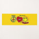 This Peace, Love & Happiness yoga mat features playful peace, heart, and smiley icons set on a warm golden yellow background designed to energize your space and your routine.