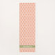 Destei's original white trellis pattern on a peach pink background color. At the bottom, a slim muted olive green panel with a white border adds contrast and has a personalizable name text. This design is a simple and lovely way to bring color and pattern into your practice space.