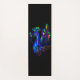 Corpo azul brilhante com penas coloridas contra preto cria um pássaro funky solteiro.