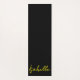 Ioga Mat com seis corações nas cores do sinalizador ORGULHOSO/LGBTQ+ com diferentes texturas semelhantes ao tecido com gravuras ao longo das bordas superior e inferior. Seu nome é amarelo brilhante (ou outra cor da sua escolha) em um fundo preto sólido.