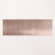 Ioga monograma com fundo de rosa de ouro escovado. Personalize com seu nome em um roteiro branco de tendência de na moda com baloiços.