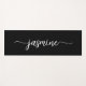 Esteira de Yoga Feminina Minimalista Simples Limpa Preta Monograma Nome Assinatura Personalizada. Este design apresenta seu primeiro nome em uma linda tipografia de assinatura com estilo de letra manuscrita com cauda swash (ou caligrafia) em branco sobre fundo preto. São fáceis de personalizar. Ótimo presente feminino e elegante para aniversário, dia das mães, festa de 16 anos, despedida de solteira, chá de noiva, festa de formatura e é para a garota que gosta de coisas limpas e minimalistas.