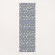 Em cores suaves, este tapete ioga apresenta aves neutras em um fundo azul legal.
