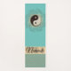 Um tapete inspirador que apresenta um elegante símbolo yin yang mosaico cercado por um floreio luminoso dourado e pequenos galhos de folha num fundo verde então no fundo está um padrão de diafragma dourado com uma fita de ouro brilhante onde você pode personalizá-lo para torná-lo exclusivamente seu. Encantando vibrações elegantes.