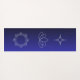 Este misterioso tapete roxo escuro apresenta símbolos esotéricos representando 3 grandes chakras ou dantiens, de cabeça, coração e barriga. Medite em sua jornada iogica ou espiritual enquanto contempla esses símbolos. A cor é profundamente calmante e chocante e os símbolos estão em prata espessa e espumante. Incline a sua prática neste lindo tapete estético. Amantes perfeitos de mistérios esotéricos, chakras e símbolos. Claro que esse tapete pode ser usado para meditação, pilatos ou outras práticas de malhação.