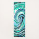 Teal, Azul e Branco Marble Fluid Art Yoga Mat.
