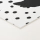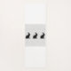 Este tapete de ioga tem três coelhos pretos sentados em silhueta preta sobre um fundo branco com bolinhas pretas.
