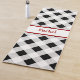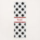 Personalize seu tapete yoga, com seu nome (ou qualquer outro texto). Um aspecto moderno com uma xadrez negra e branca minimalista. O texto personalizado é vermelho.