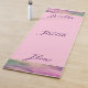 Aumente sua prática de ioga com este tapete único de ioga que apresenta uma mistura serena de tons claros e claros, lavandas, misturados. Adorado com o inspirador texto cursivo 'Respire, Estice, Fluxo', este tapete foi projetado para trazer calma e focar nas suas sessões. É uma superfície não escorregadia que garante estabilidade, porém leve, fazer fácil de carregar. Perfeito para iogis que busca estilo e funcionalidade