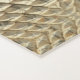 As sementes da cabeça seca de girassol são apresentadas numa imagem espelhada de azulejo, tanto à frente como atrás. Áreas de sombra escura correm pelo centro do tapete com áreas mais leves de sementes radiando para fora em linhas geométricas.