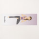 Este ioga mat mostra a ilustração de Destei de uma linda garota morena praticando yoga. A mulher está fazendo a pose de árvore e suas mãos estão em nome. Ela está vestindo uma camisa lilás e calças de cinza escura. Há também uma área de texto personalizável para um nome na fonte de cor da cinza. O fundo é um gradiente lilás a branco.