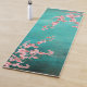 Zen Cherry Blossom Watercolor Yoga Mat in Italian Green