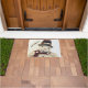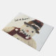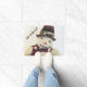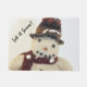 Foto de um boneco de neve amigável em uma esteira bem-vinda.