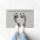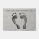 A porta interior-exterior de excelente é um lembrete útil a todos os que entram para limpar os calçados sujos antes de ir mais longe. Imagem mostra a impressão de um grande par de pegadas (como se um pé tivesse pisado pela primeira vez em uma almofada de tinta preta) sobre um fundo de cinzas, madeira branqueada. A legenda no topo diz: "Por favor, deixe suas pegadas aqui". Um pouco de humor linguado na bochecha que é sutil mas eficaz.