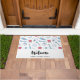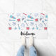 Uma porta bem-vinda com um padrão teórico dental. Apresentando ilustrações coloridas de dentes, escovas de dentes e várias ferramentas dentárias.