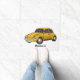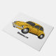 Um clássico carro amarelo feliz. Desenhado em estilo de desenho animado divertido.