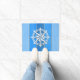 Design de temas náuticos com decoração em bússola sobre fundo de madeira azul e cinza listrado. Por favor, note que isto não é feito de madeira, é um impressão gráfico de madeira.