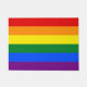 Este doormat fabuloso caracteriza o design simples contudo corajoso da bandeira do orgulho através do doormat inteiro. Isto pode ser colocado na frente de sua porta ou em qualquer lugar em sua casa como um tapete ou uma esteira decorativa onde você goste de adicionar um acento pequeno do arco-íris. É apropriado para mais ou menos todo o tema ou estilo da decoração home e combina alguns dos temas da cor caracterizados dentro das cores da bandeira assim como de muitas outro que combinam o arco-íris no conjunto ou apenas uma ou dois das cores.