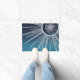 Um design de gradiente mágico, branco, dourado e da lua mandala azul e lacrimogêneo, com flores e folhas, estrelas, pontos, diamante, círculos, triângulos, formas de chevron, escala de sereia, padrão geométrico, feito com uma cor branca vibrante e brilhante, com uma lua brilhante palco crescente, uma estrela da flor da mandala, em tom azul marinho, e fundo de gradiente azul claro. Este lindo, místico, tema do universo, sol fofo, henna, trabalho de arte do estilo mandala, impressão de imagem original.
