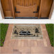 Esta porta rústica faz o presente perfeito para seu trailer viagem. As palavras no topo podem ser personalizadas para o que você quiser. Alguns exemplos são "campistas felizes" ou "bem-vindos ao nosso trailer" ou o que você quiser. Na parte inferior você pode adicionar seu próprio nome ou colocar o que quiser também. A porta apresenta pássaros voando sobre montanhas com a lua e estrelas no fundo e uma fogueira no primeiro plano.