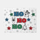 Design de Natal Ho-Ho com flocos de neve, boneco de neve, árvore de Natal, renas e estrelas coloridas decoradas sobre fundo branco