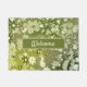 Bem-vindos aos seus convidados com uma porta verde design floral. Opção para personalizar o "Bem-vindo" com qualquer nome, mensagem ou outro texto desejado. Personalize ou crie sua própria casa ou decoração de jardim ao ar livre.