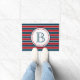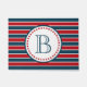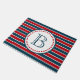 Design de temas náuticos com decoração em forma de monograma, em forma redonda, com estrelas sobre fundo listrado a azul, vermelho e branco