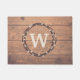 Design de monograma para Natal, com coroa e decoração de neve sobre fundo de madeira rústica